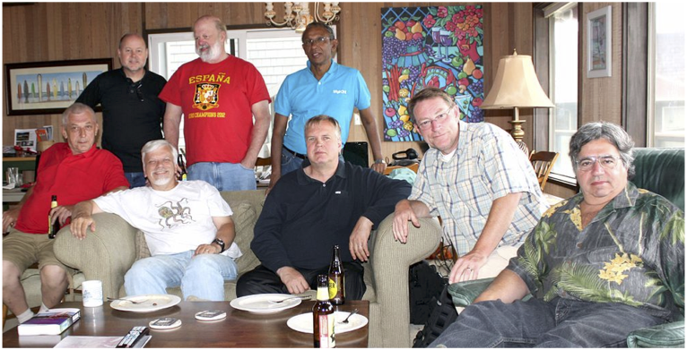 Deja Vu Dxpedition, near Yachats, OR l-r - Vlad Titarev, Guy Atkins, Bruce Portzer, Chuck Hutton, Victor Goonetilleke, Mauno Ritola, Bill Whitacre, Neil Kazaross