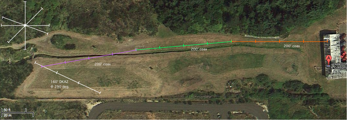 Grayland Motel 'back 40' Googlemap base layer with antenna stuff 'drawn' on top